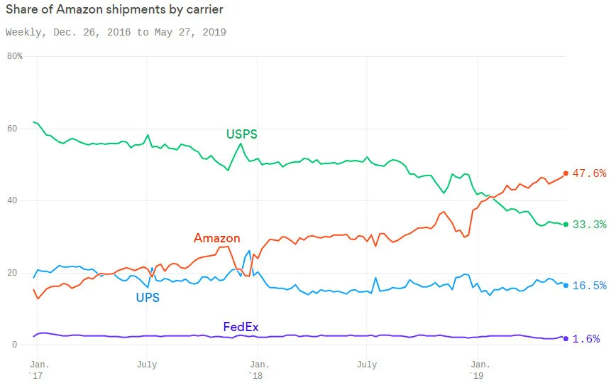 Amazon is already 50% of the eCommerce market. Which means they have direct control over about 25% of the eCommerce parcel volume in North America by default. No one else has that power.