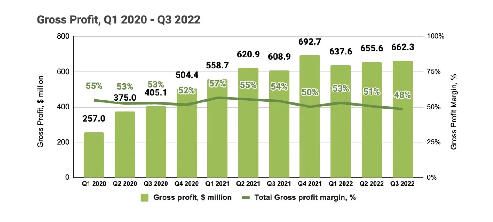 Faster growing Merchant Solutions (Payments/Capital,etc) is ~40% gross margins. This is typical retailer gross margins.